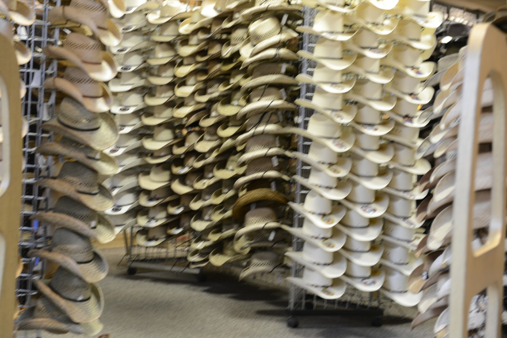 Smygskott med för lång slutartid. Men jag ville ändå visa att här kan man köpa hattar.