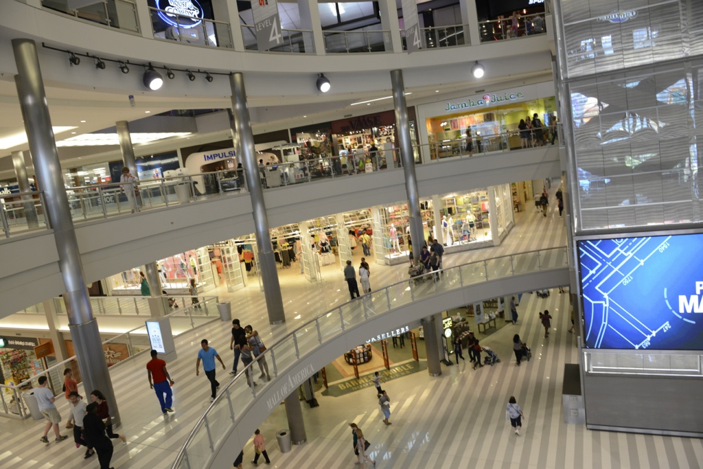 Det tar ca 20 minuter att gå ett varv runt. Det är tre våningar och ska man se allt bör man gå både inner och yttervarv. Till det finns det stora affärer i alla fyra hörnen plus lite extra i mitten.